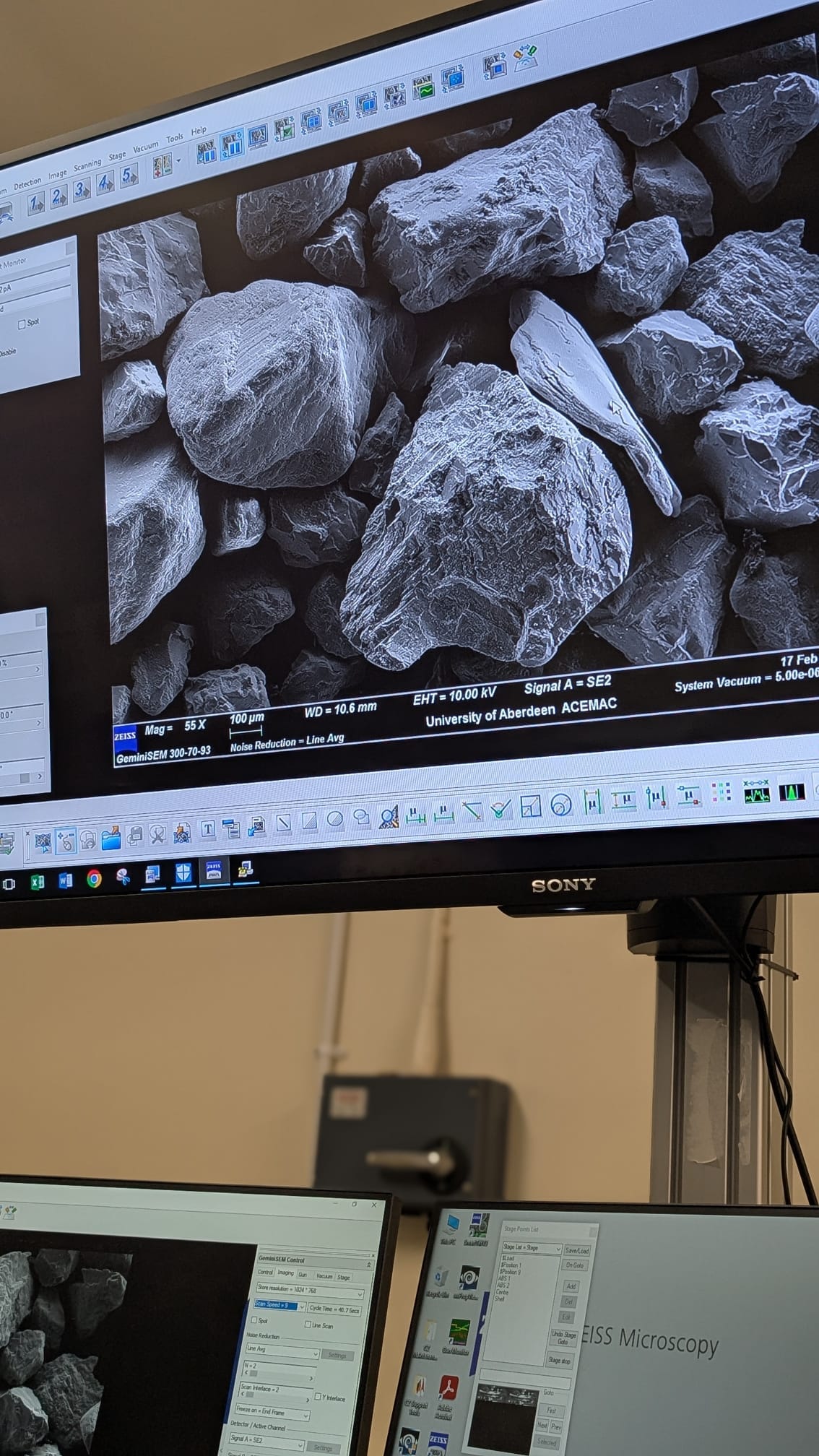 April Hay's microscope image of Aberdeen Sand Laura Sherriff's Bag Development Ben Durack's 3D chair models Anne Marquiss' ship hull drawings