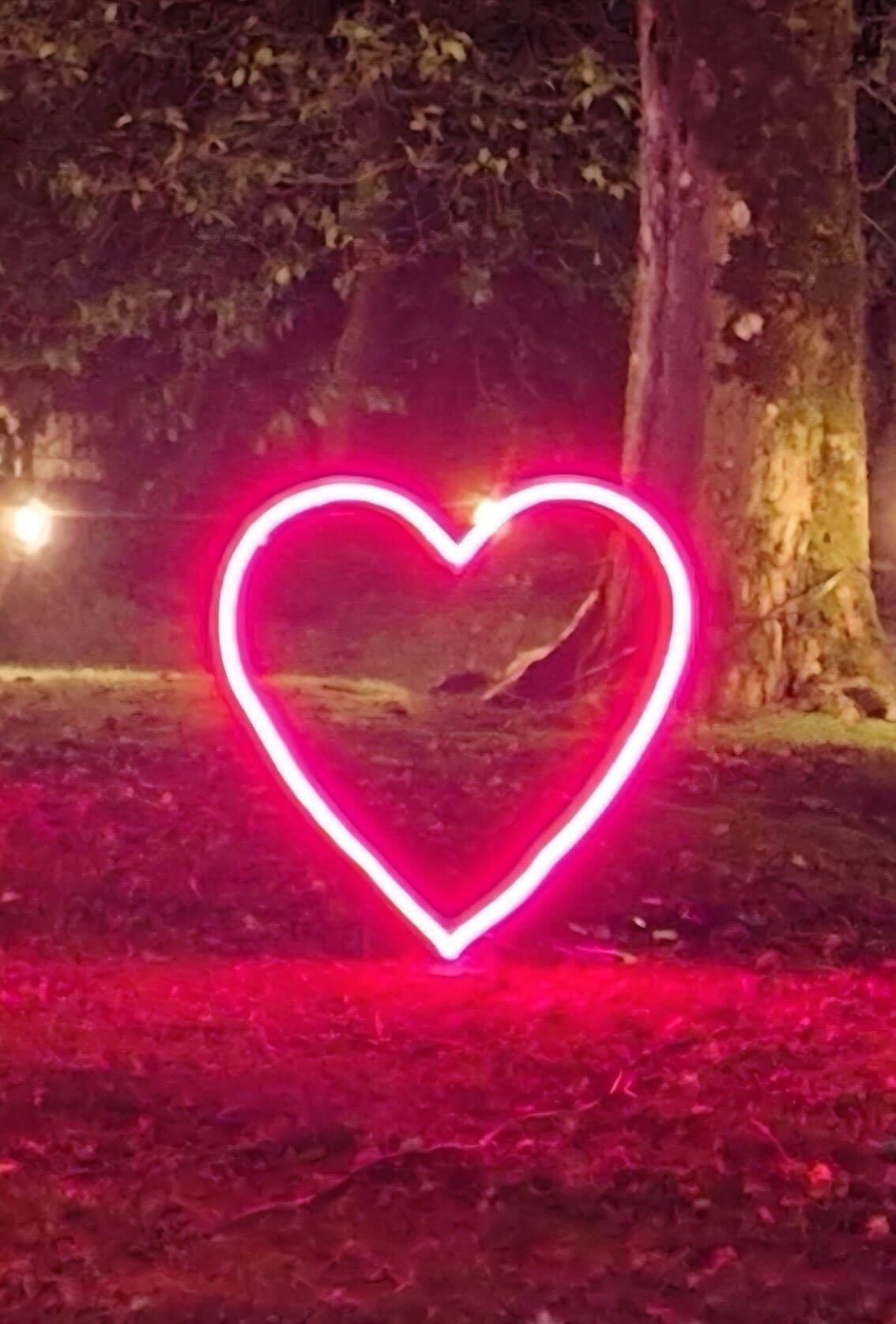Follow Your Heart is a local commission through Spectra's Micro-Commission Programme. Local artist Laura Curran has created sculptural heart forms that cycle through programmed lighting patterns. They pulse and shift, sometimes in sync, sometimes not. An original marimba composition plays alongside. It's subtler than its neighbours and easy to miss if you're rushing past to Distopia. Don't.