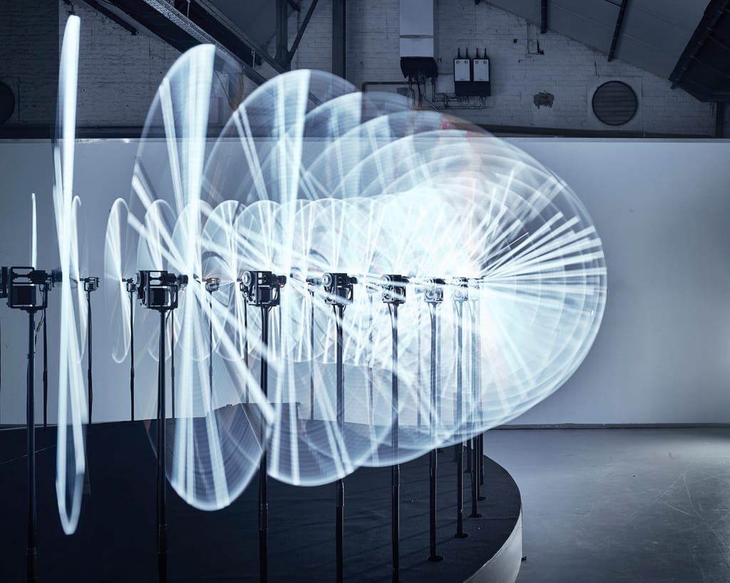 Flux by French collective Scale is a kinetic sculpture made from 48 strips of light arranged in a circle. The structure rotates at varying speeds, sometimes slow, sometimes frantic, creating trails of light that shift constantly. It's been touring internationally since 2021. I'd recommend standing in front of it for longer than feels necessary. The patterns change.
