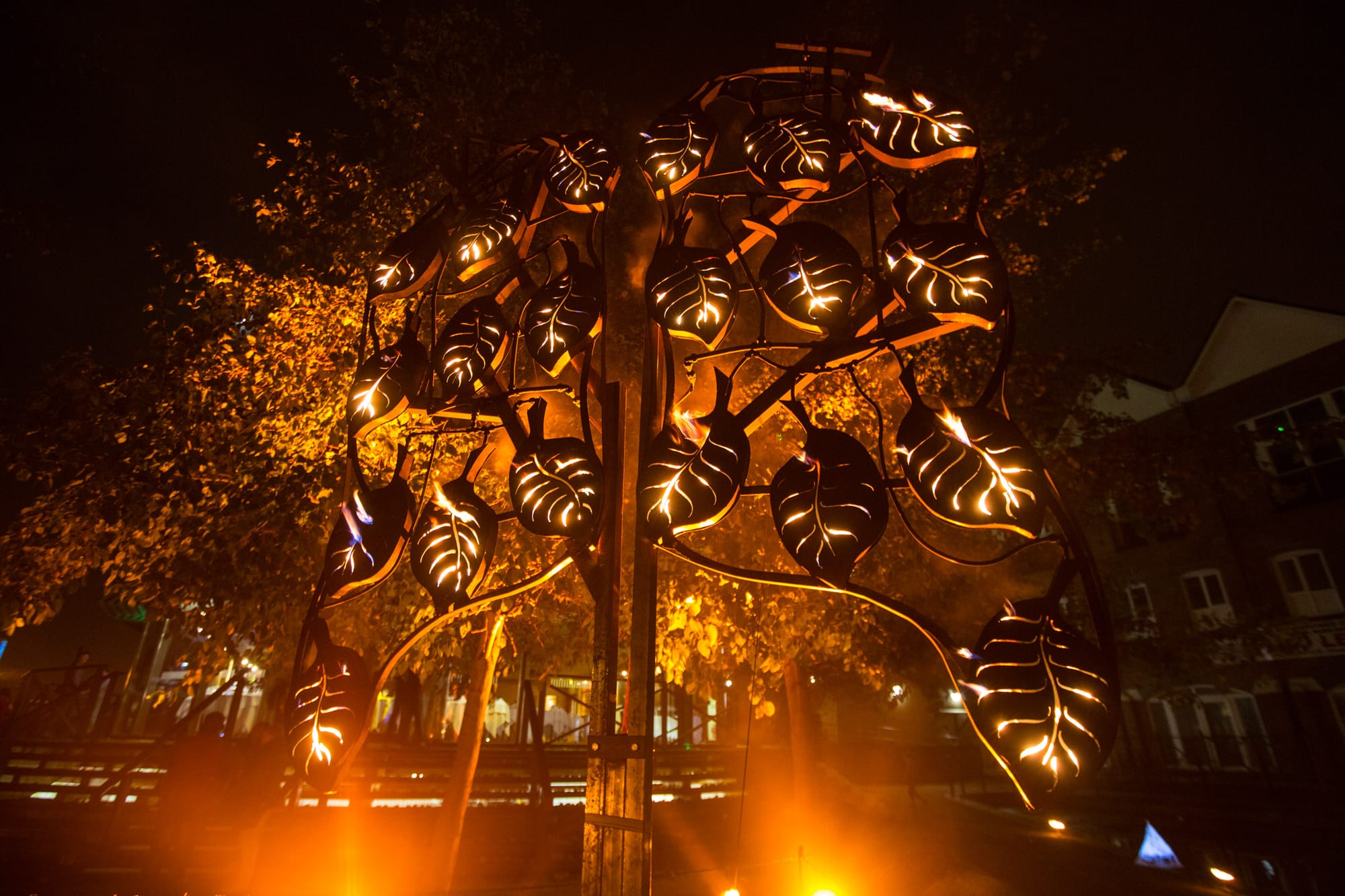 WERC's Mofingu creates shifting digital portraits from viewers, while Walk the Plank's Fire Garden features illuminated metal sculptures.