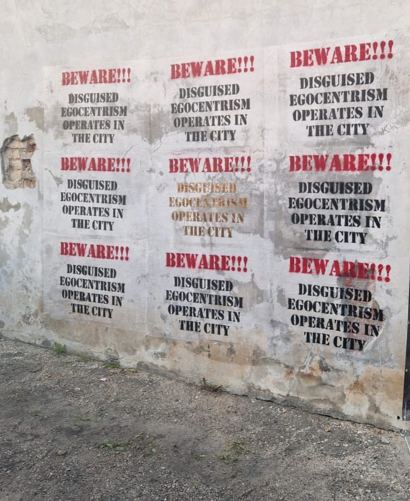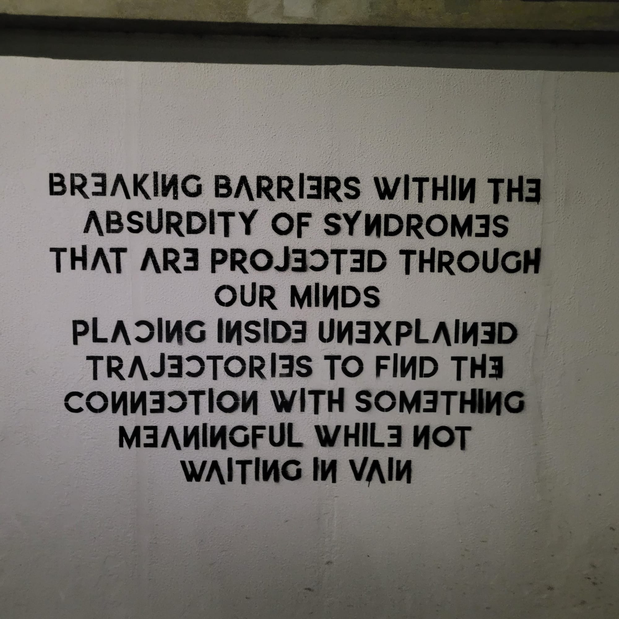 V2k’s street work has always carried text as a structural element rather than as caption, and that approach continues here. His is a practice that rewards close attention, where the written and the visual push against each other rather than illustrating the same point.