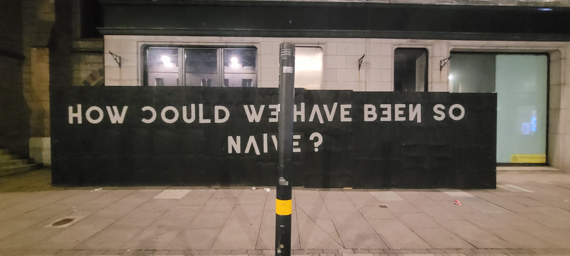 Works by V2k, whose street practice spans poem-texts, slogans and stencils across Aberdeen and beyond.