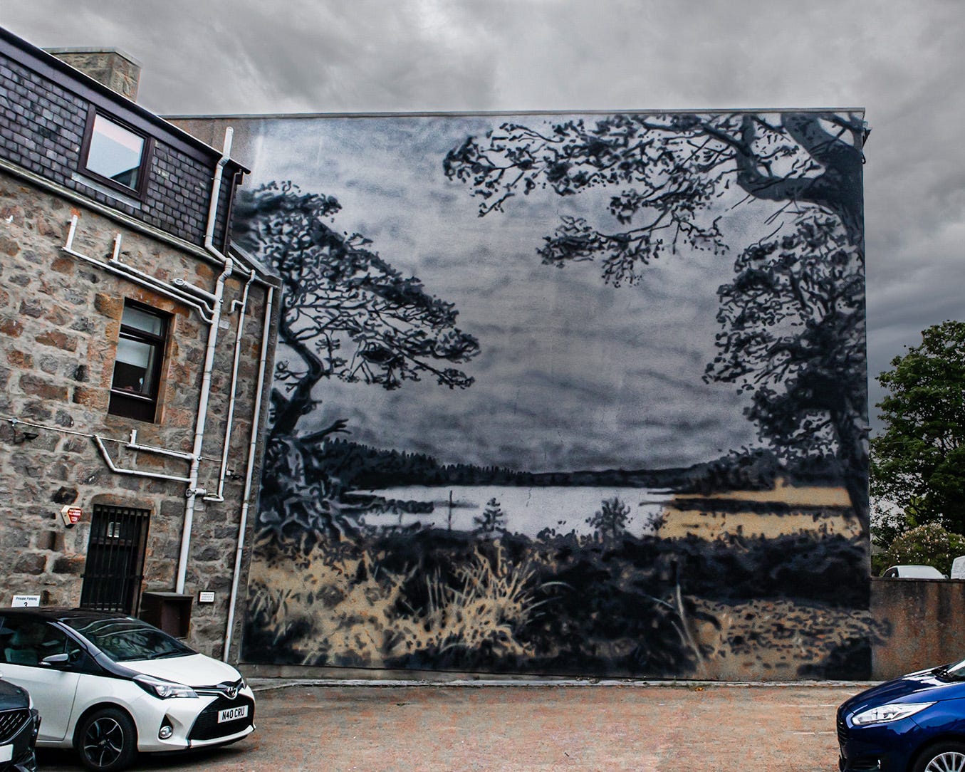 His contribution to Nuart Aberdeen 2023 holds special significance as it is the first artwork created using paint derived from air pollution. Depicting the Caledonian Forest, a once-vast woodland that has dwindled to a fraction of its original size over centuries, his work serves as a poignant reminder of its depletion.
