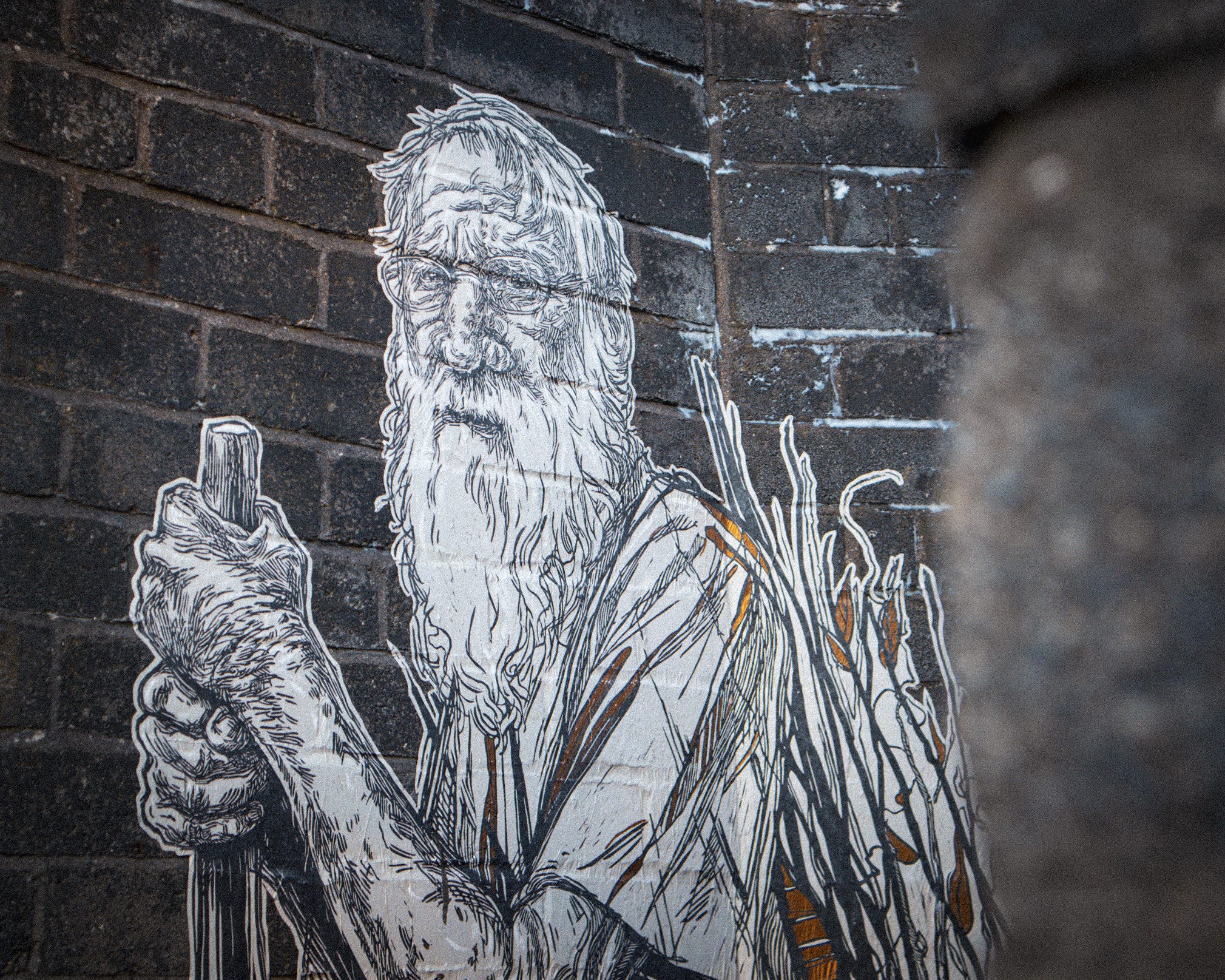 Notably, nestled within the composition, an ivy plant sprouts in the lower corner. We think SNIK's vision is to allow nature to play its part in the artwork's evolution. In a nod to their previous works, the plan is to let the ivy partially grow over the mural, infusing it with natural greenery and creating a truly rewilding effect.