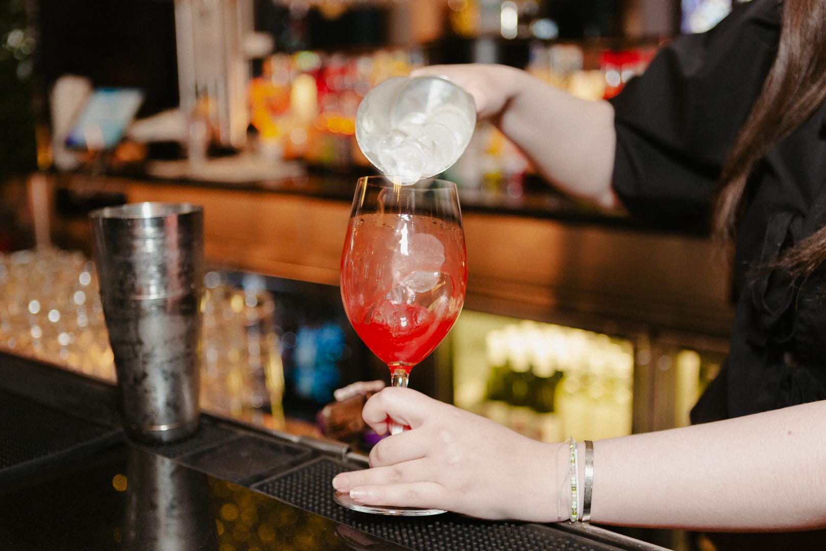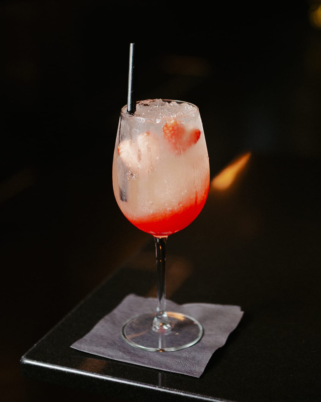The Strawbello Spritz in progress and finished at Soul. Light, fruit-forward, and crowned Cocktail of the Year 2025
