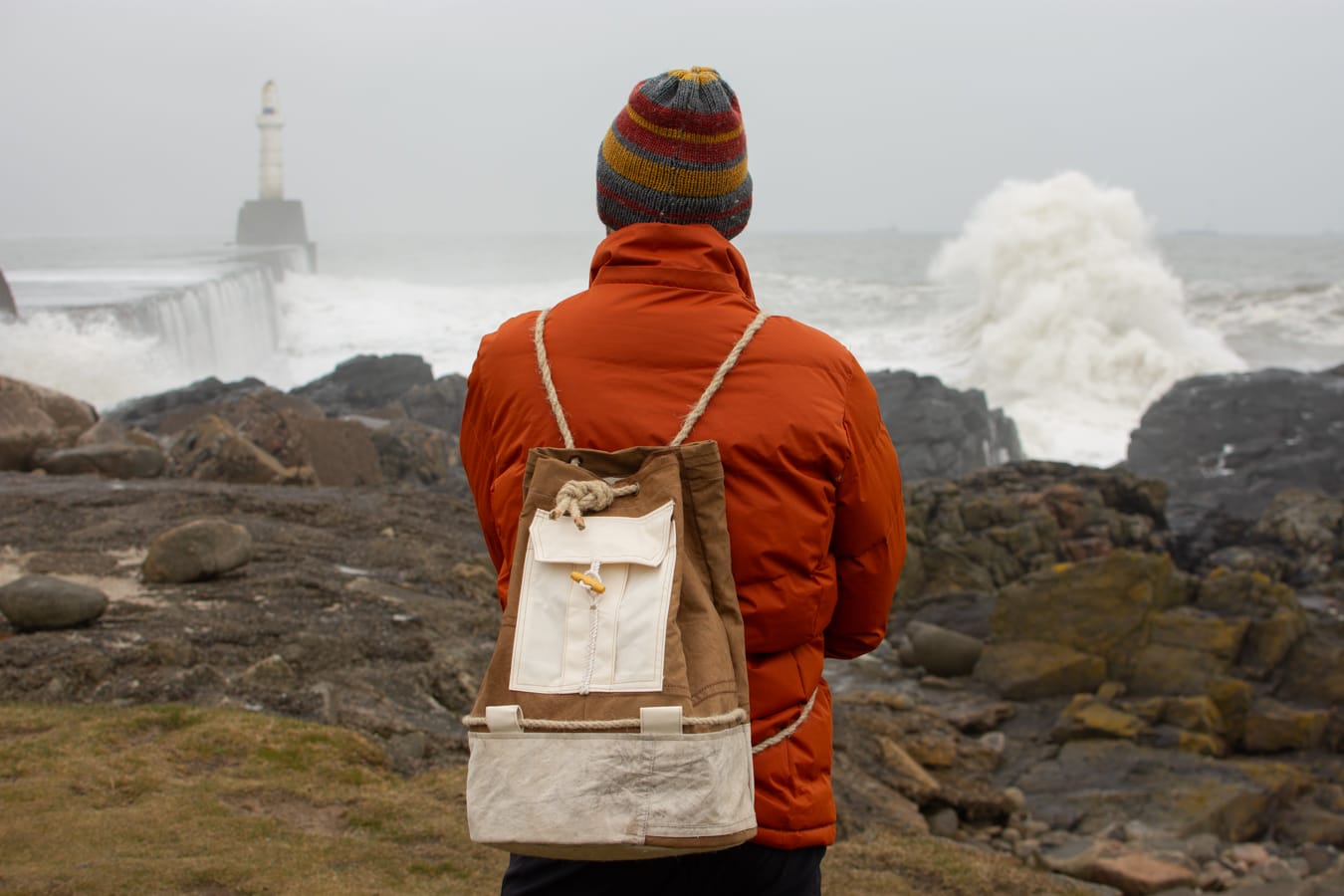 I also used canvas sailcloth from the 1950s, typical of the sails used in traditional North East fishing boats. Though fragile in parts, it carried character and history. I used it to create one of the ditty bags, letting the patches and wear speak for themselves.