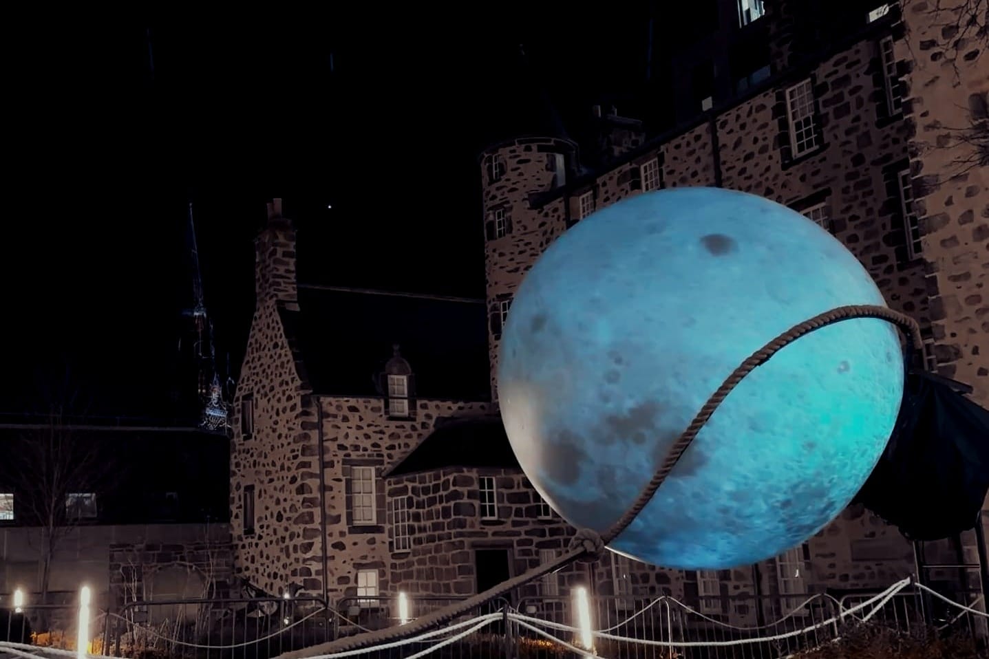 In Ursula Lassos the Moon, a high-definition 3D projection of the Moon is suspended in the sky, tethered to a boat. This surreal installation combines the natural beauty of the Moon with themes of mystery and femininity. The work explores the symbolism of the Moon in mythology, with a female protagonist, Ursula, drawing on the idea of conquest and mystery.