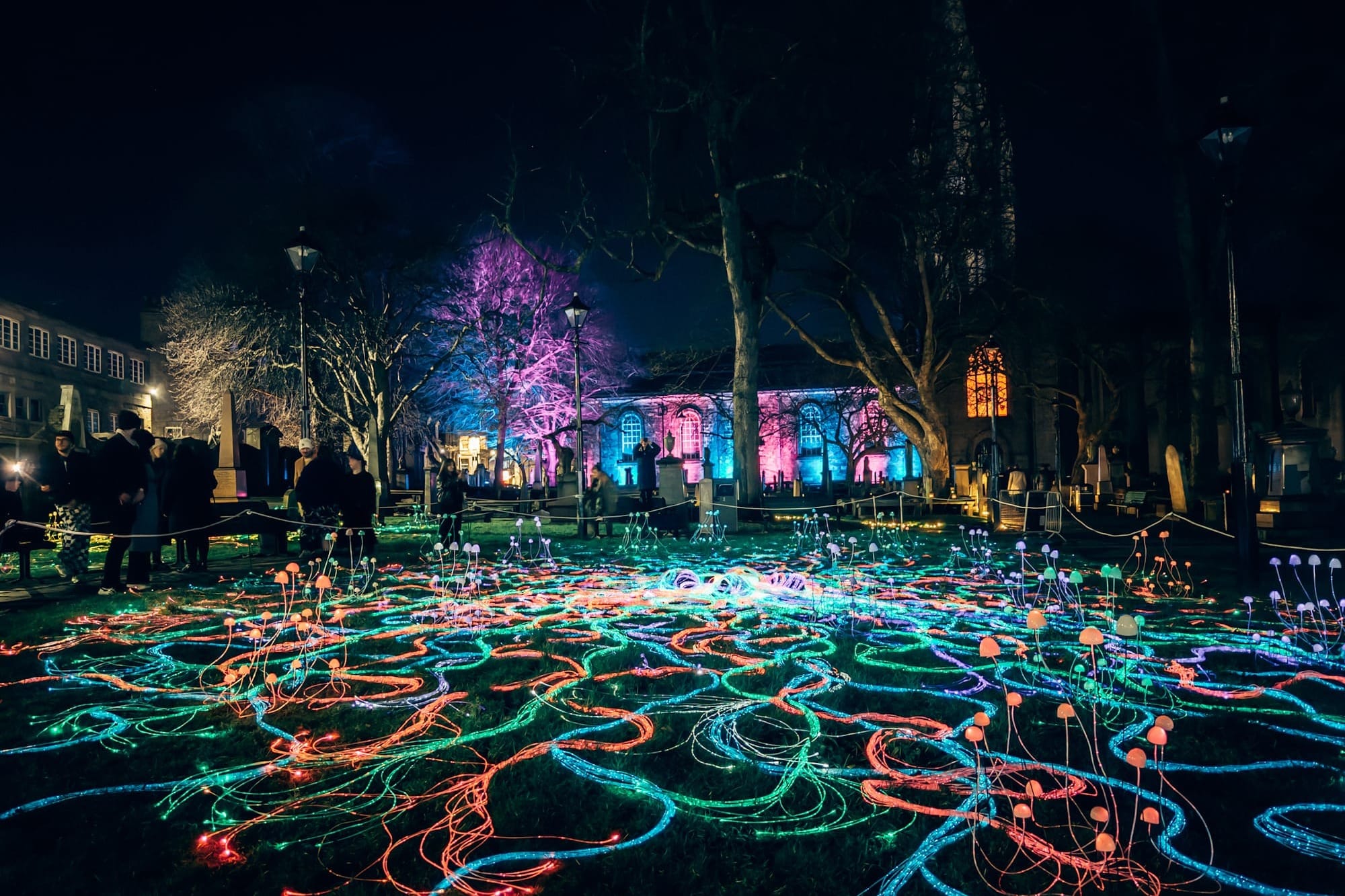Mycelium Network is a fibre optic light installation that explores the hidden connections between trees, plants, and mushrooms. Using mycelium as a metaphor for environmental regeneration, this installation highlights the importance of these underground networks in sustaining ecosystems and fighting environmental damage.